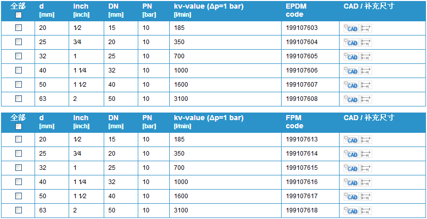 閥門(mén)個(gè)別配置(參見(jiàn)表格)
