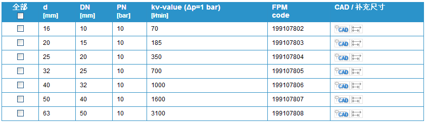 閥門個別配置(參見表格)