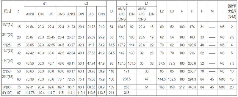 2) 尺寸:1/2''-4'';20mm-110mm;DN15-DN100